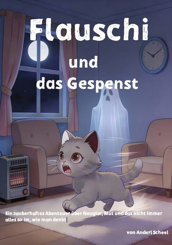 Flauschi wird nachts wach und hat Durst. Auf dem Weg zu ihrem Schälchen in der Küche entdeckt sie im Wohnzimmer etwas, das sie für ein Gespenst hält. In der Küche trifft sie dann auf drei kleine Mäuse...